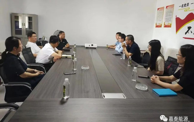 ?6月7日,,,,先导薄膜质料有限公司董事长朱刘先生携相关职员来amjs澳金沙门线路首页考察洽谈相关相助事宜,,,,开发区党工委委员、管委会副主任陈法强、钟楼街道党工委副书记孙雪婷等陪同,,,,amjs澳金沙门线路首页能源董事长肖峰、总司理姜滨及相关技术职员接待参会。。。。