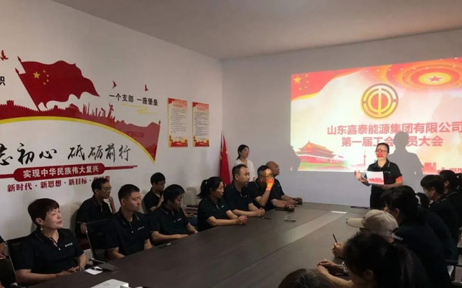 ?6月14日,,,,,,经淄川经济开发区总工会批准,,,,,,amjs澳金沙门线路首页工会委员会正式建设,,,,,,并召开了amjs澳金沙门线路首页第一届工会会员大会,,,,,,区挂包干部苗雨,,,,,,amjs澳金沙门线路首页能源总司理姜滨及全体职工参会。。。